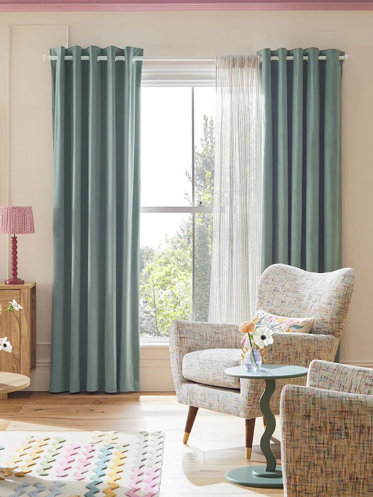 Our thick, high-quality curtain fabrics help reduce outside noise creating a calm and more comfortable indoor space.